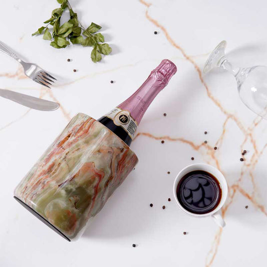 "Wine Chiller and Wine Glasses are pleasantly heavier than expected, which I appreciate. The packaging was meticulous, keeping everything lovely and intact. The colors are vibrant, just as shown, and it arrived within days. Really thrilled with this buy"