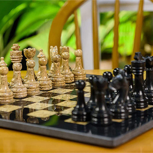 15" Artreestry Handmade Marble Chess Set Black and Golden