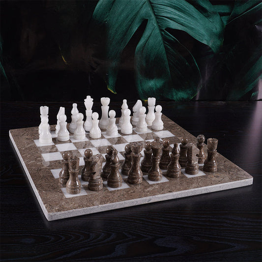15" Artreestry Handmade Marble Chess Set Grey Oceanic and White