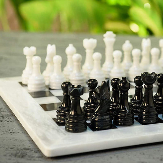 White and Black 15 Inches Premium Quality Marble Chess Set (With Storage Box)