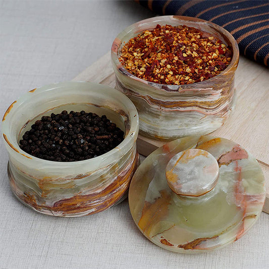 Artreestry Handmade Marble Salt Cellar With Lid Set of 2